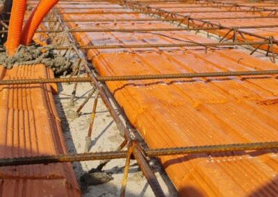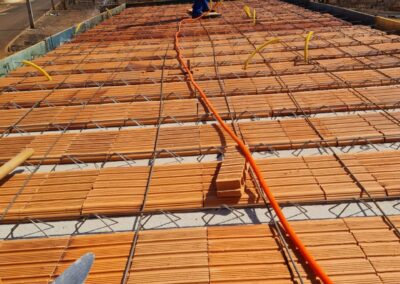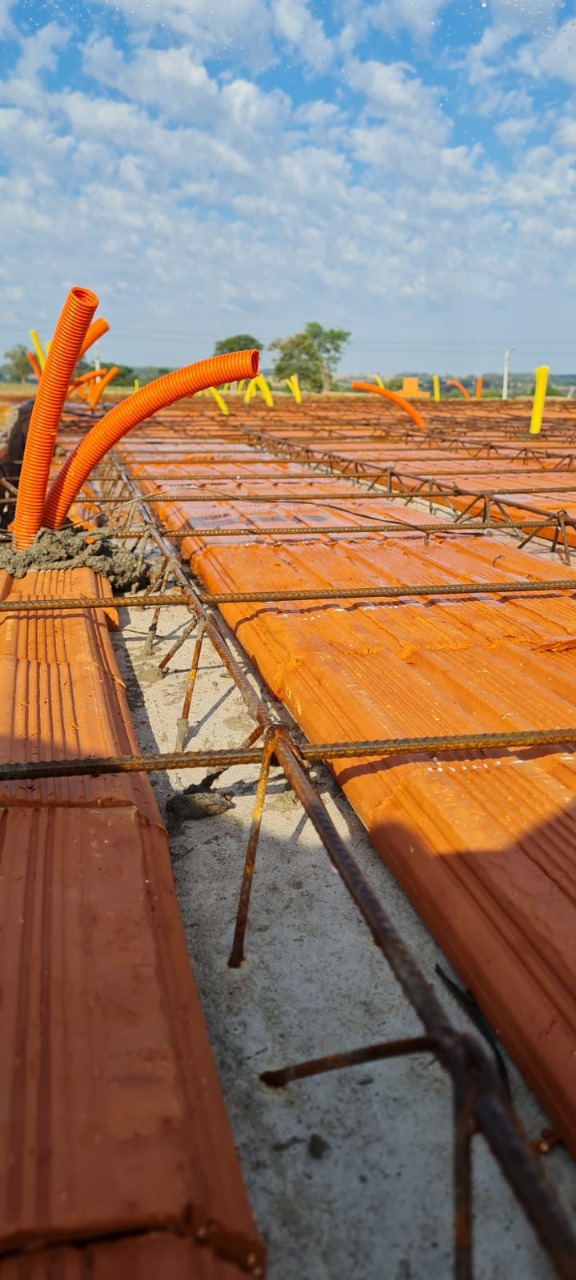 Lajes Treliçadas: Produzidas com rigoroso controle de qualidade, nossas lajes garantem máxima resistência estrutural, proporcionando segurança e agilidade no tempo de execução da obra.